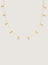 Subtilus perlų vėrinys su cirkonio lašeliais. Šis natūralių perlų vėrinys yra sukurtas damai, kuri savo įvaizdį nori papildyti lašeliu spindesio. Perlų vėrinio ilgį galima lengvai reguliuoti, o plokšti ir kiek netaisyklingos formos perliukai suteikia modernumo įspūdį.