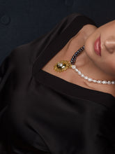 An incredibly luxurious pearl necklace that leaves no one indifferent, featuring a stunning, sun-kissed baroque pearl pendant. The Josephine necklace of freshwater pearls combines the well-known white pearls with mysterious black pearls.