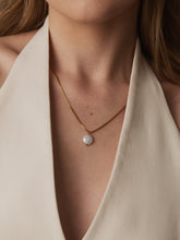 Minimalist necklace with a freshwater pearl and a stainless steel chain. The length of the pendant is adjustable, so this pendant is a great choice for jewellery layering.