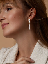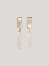 Sheila pearl earrings with a shell-inlaid fastening. The Sheila earrings are a wonderful duet of pearls and shells, where pearls and shells unfold as a harmonious whole.