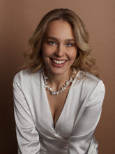 Stunning and regal flat baroque pearl necklace Eleanor. Carefully selected Baroque pearls in an elegant and memorable necklace are truly special because each one is different, individual, and unique.