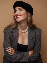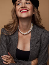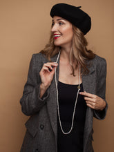 A very long white pearl necklace, easily transformable into various lengths of necklaces or even a bracelet. The Marlene necklace reaches up to 120 cm, making wearing it an absolute expression of your imagination. You can adorn it over thick cozy sweaters in winter or light dresses in summer.