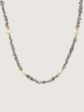 The reliability and convenience for this silver-colored necklace comes from a simple but strong "T" clasp. The design of this necklace features a metallic sheen, elegantly complemented by delicate gold detailing and round freshwater pearls.