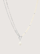 The Duo necklace is versatile, suitable for formal and casual looks, and easily combined with other accessories: metal and pearl jewelry.