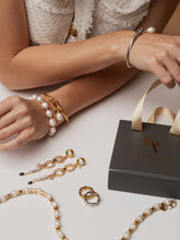 Bangle style bracelet made of durable and eternal stainless steel, decorated with freshwater pearls. Easily matched with other accessories and tastefully complementing your image, the Alexa bracelet will become a much-loved and stylish accessory.