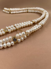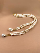 The combination of a double strand of freshwater pearls and two beautiful baroque pearls leaves an indelible impression of luxury and originality. The length of this necklace can be slightly adjusted to find the perfect combination of jewelry and clothing.