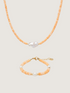 The Carousel necklace and bracelet set is simply perfect choice for summer. Warm summer days we want more colours and to be adorned with light but stylish accessories. Sunny days at the beach or in the city will become even more attractive with this shell and pearl jewelry. Choose from many different colours.