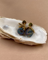 These Agate stone earrings are filled with a mysterious galactic glow, with each stone uniquely glowing to accentuate our signature features. Each stone, although of unique beauty, is light and comfortable, so these earrings will not tire you even if you wear them all day. Hematite stone details provide even more magical sparkle to these earrings.