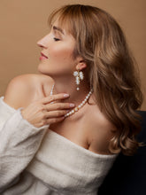 Creating Gloria earrings I used pearls of the same style as in the necklace. Nevertheless, both earrings are the same, but slightly different, giving earrings some extra mystery.