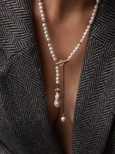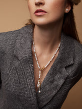 The Eliza pearl necklace boasts a baroque pearl dangling at its bottom and gilded details, along with a Crown ornament that gives a special luxury touch.