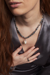 Nora necklace is made using galvanized hematite beads and baroque pearl. /I I created Nora's design a long time ago, but it is truly timeless and never goes out of style. Lots of gold sparkle and a subtle mother-of-pearl shine.
